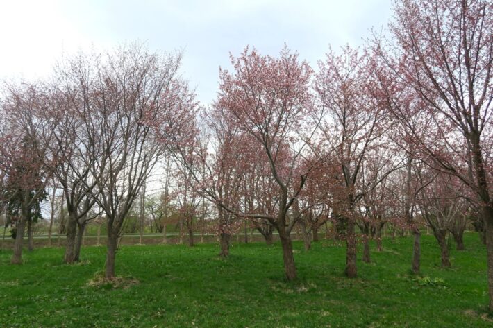 おはようございます。本日は雨も少しパラついて肌寒い朝となりました。モエレのサクラは「開花」となっております。日当たりによって開花が進んでおり、花を楽しめるエリアもございます。このあと日差しがあり気温が上がりますともう少し咲き進みそうです。本日も風が強くなっておりますので、お越しの際はどうぞ暖かい服装でおいでください。